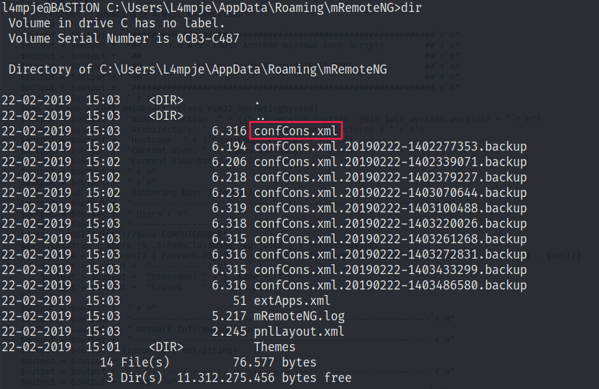 We need to grab a configuration file in :\Users\L4mpje\AppData\Roaming\mRemoteNG\ that contains a password: