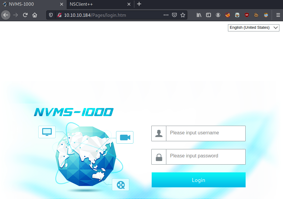 On port 80, there is a a login page for the NVMS-1000 network surveillance software.