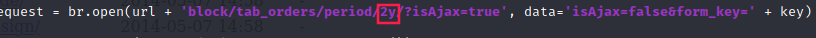 request = br.open(url + 'block/tab_orders/period/2y/?isAjax=true', data='isAjax=false&form_key=' + key)